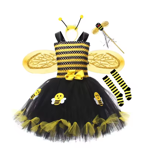 الفتيات تأثيري النحل زي بلا أكمام تول فستان عقال تدفئة الساق العصا الجناح مجموعات للحزب تأثيري