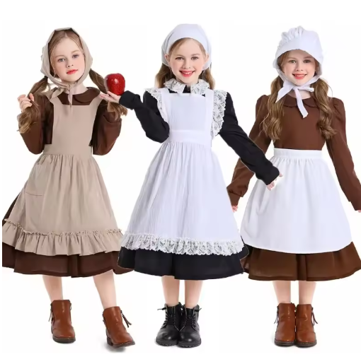 زي فتاة الحاج الاستعماري قرية المزرعة أزياء فتاة فستان البراري الرائد 2-4Y 4-10Y 10-16Y توين المراهقين