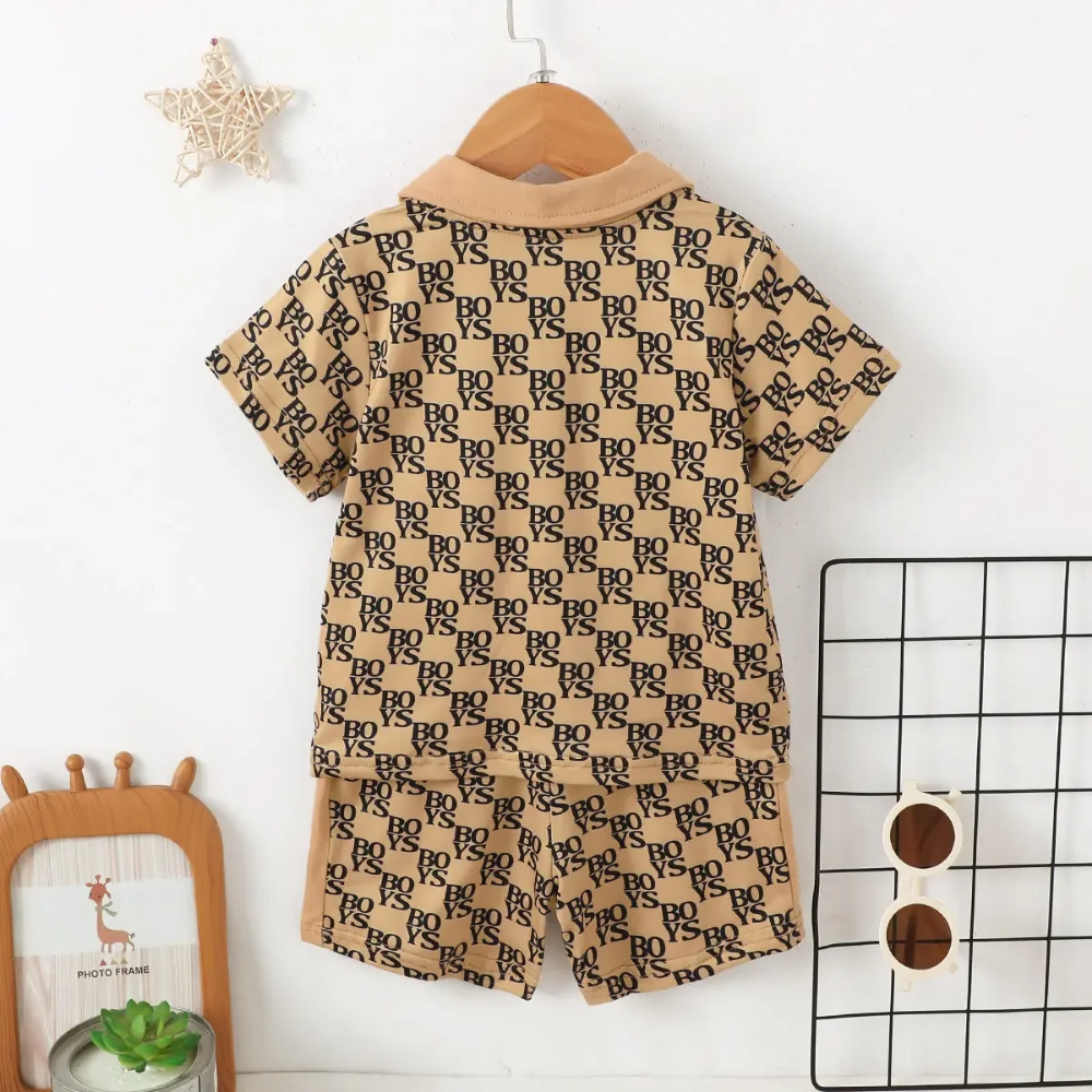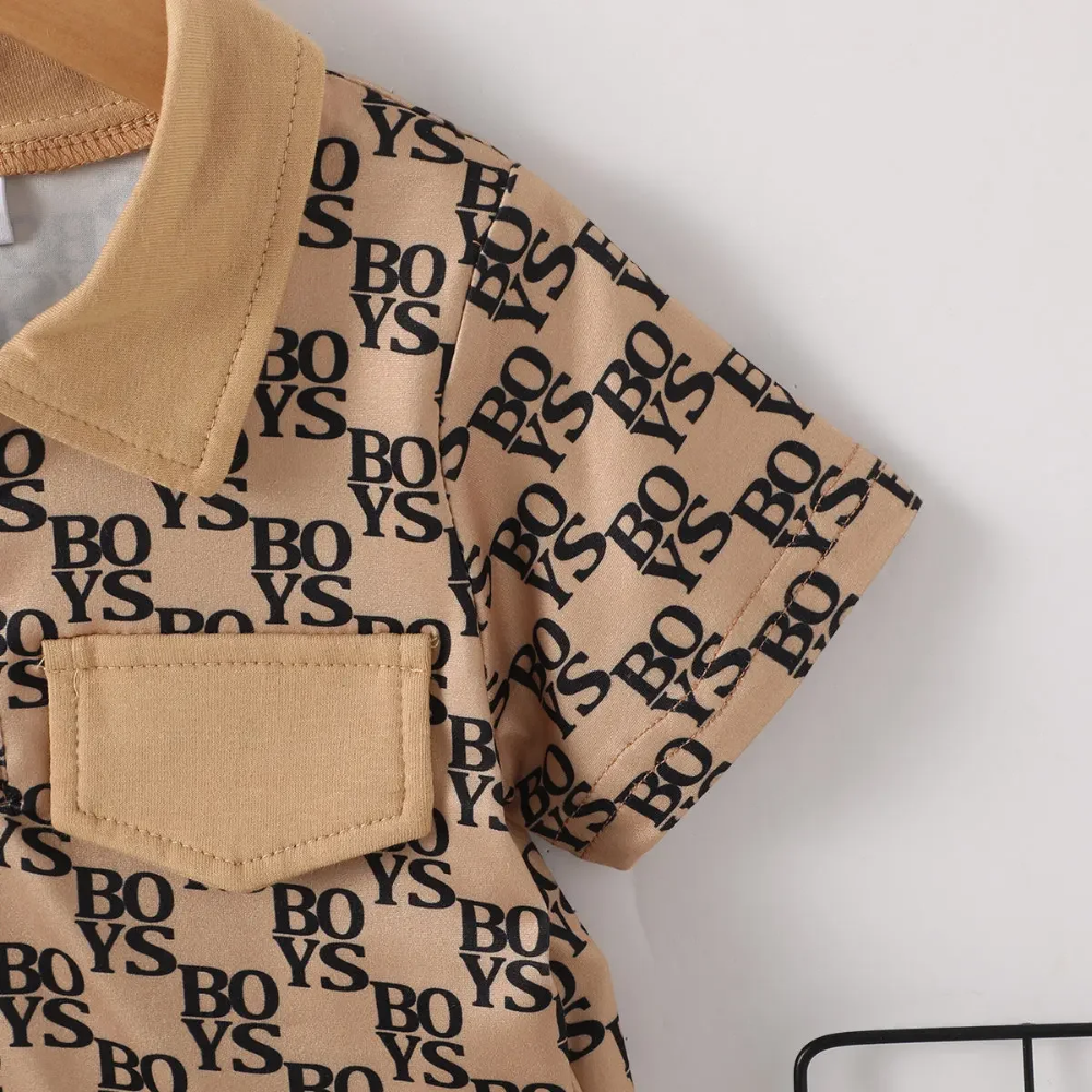 2 قطعة مجموعة ملابس الأطفال موضة شهم جيب نمط زر قصيرة الأكمام بلوزات + السراويل الزي الصيفي للأطفال الصبي 1-6 سنوات