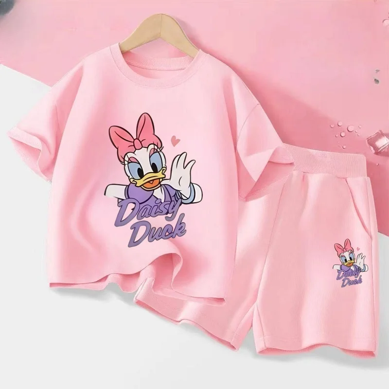 الصيف طفلة الصبي الملابس مجموعة الأطفال ديزي الكرتون ميني الطباعة تي شيرت و قصيرة 2 قطعة دعوى طفل السراويل كم رياضية